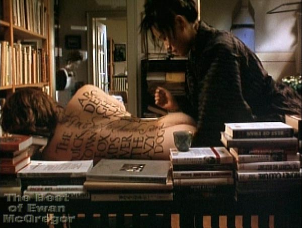Here’s an example of just one of the many many many scenes in that movie where Ewan appears completely naked, covered in calligraphy.